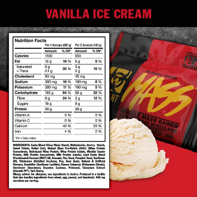 گینر ویت مس موتانت Mutant Mass Weight Gainer Protein در هر وعده خود 1100 کالری را ارائه می دهد. این مکمل غذایی با استفاده از منابع طبیعی مانند جو، سیب زمینی شیرین، جو دوسر، آووکادو، روغن نارگیل، بذر کتان، دانه کدو تنبل و روغن آفتابگردان ساخته شده است. علاوه بر این 56 گرم پروتئین خالص، 192 گرم کربوهیدرات و 12 گرم چربی را ارائه می دهد. در کنار همه اینا شما می توانید 26.1 گرم EAA و 12.2 گرم BCAA را دریافت کنید. اسیدهای چرب ضروری (EFA) و روغن های طبیعی نارگیل؛ آووکادو، بذر کتان، تخم کدو تنبل و آفتاب گردان در آن استفاده شده است. شما می توانید این محصول را در طعم های خارق العاده خریداری کنید
